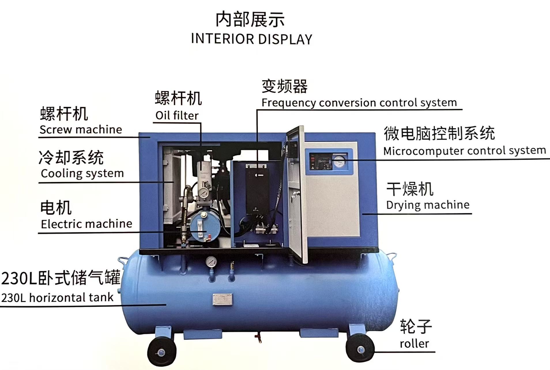 Beyond its integrated and portable design, the compressor is equipped with advanced variable frequency technology and a microcomputer control system—two features that elevate its performance and ease of use. The variable frequency technology adapts to your actual air demand in real time, ensuring that energy is not wasted on unnecessary operation, which translates to lower energy bills and a longer service life for the equipment. The microcomputer control system simplifies operation, allowing your team to monitor and adjust the compressor with ease, even without specialized technical training.